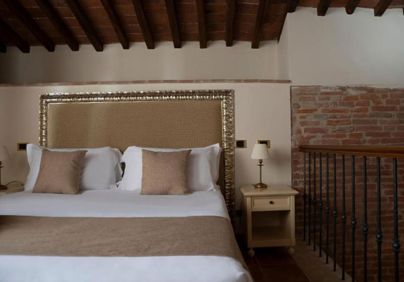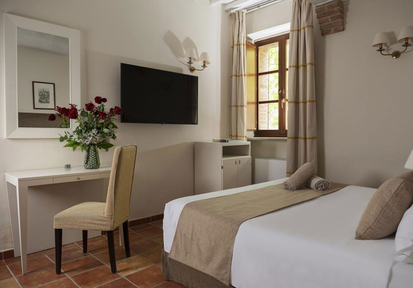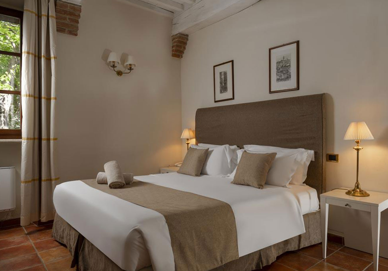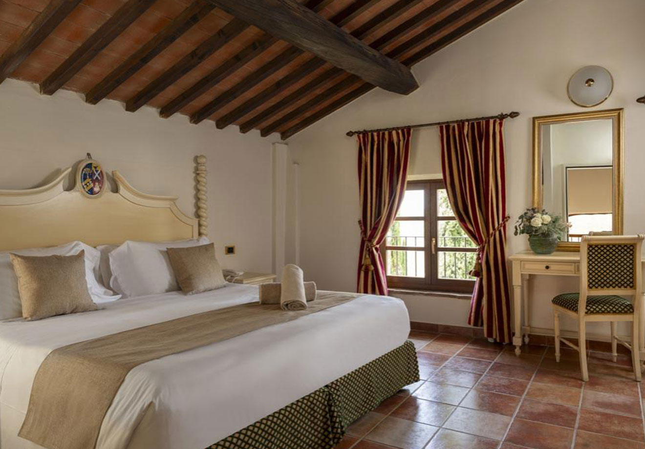 18 m² room with a view of the charming Tuscan countryside. Exposed beams and Tuscan terracotta tile floor provide luxury and comfort.