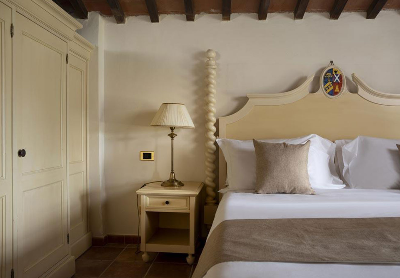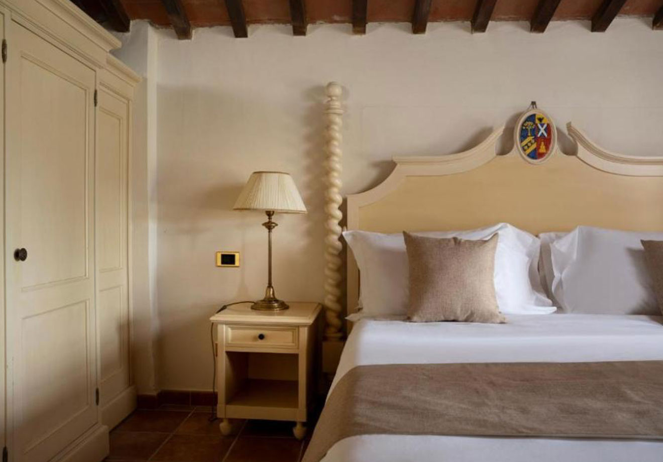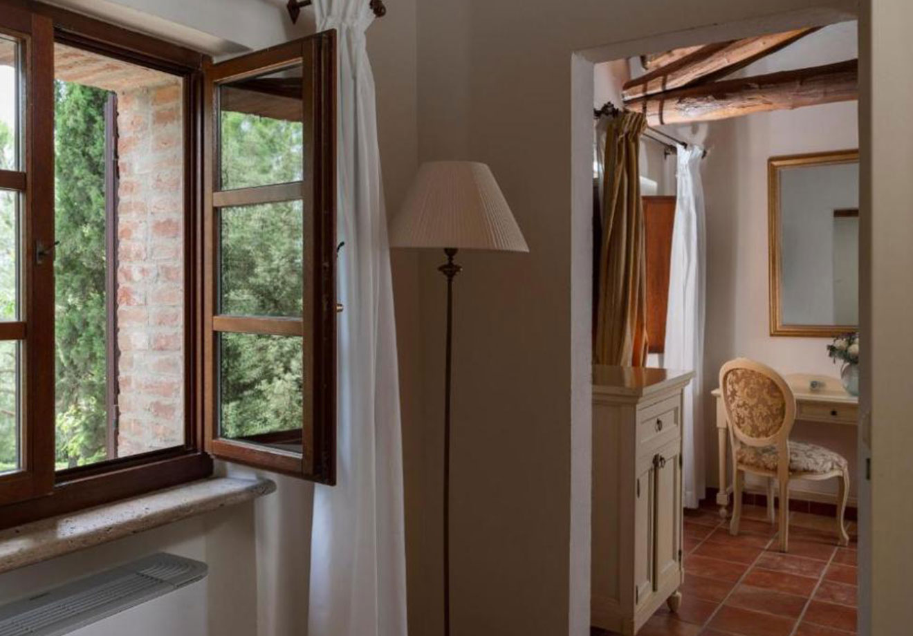 18 m² room with a view of the charming Tuscan countryside. Exposed beams and Tuscan terracotta tile floor provide luxury and comfort.
