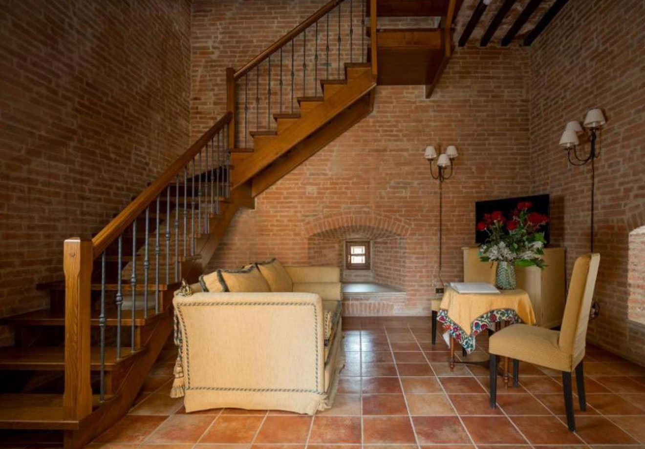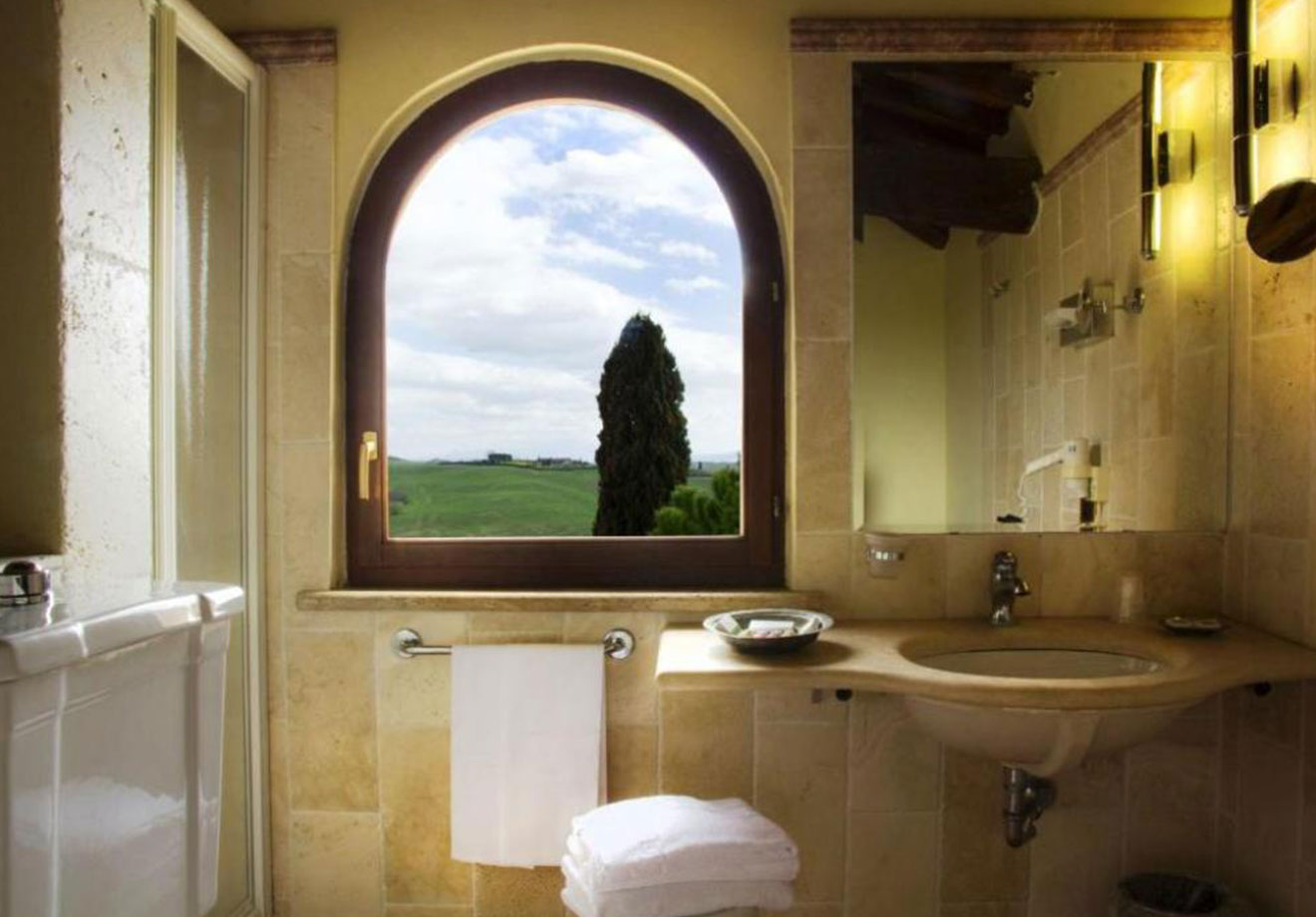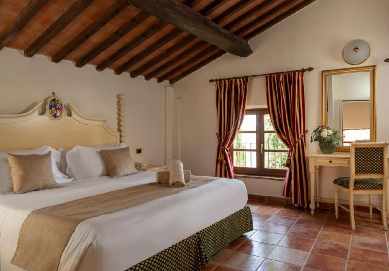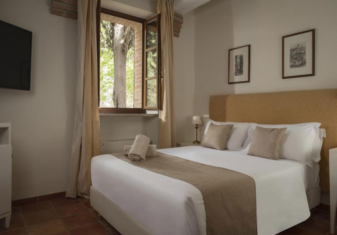 18 m² room with a view of the charming Tuscan countryside. Exposed beams and Tuscan terracotta tile floor provide luxury and comfort.